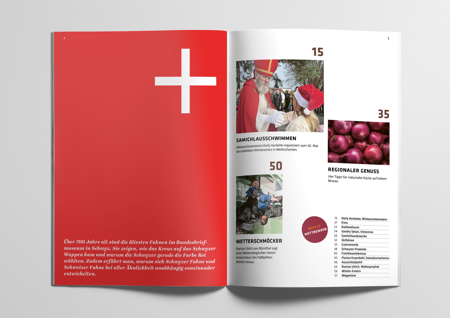 Von der Kantonsflagge über das ikonische Taschenmesser von Victorinox bis zum Ort Rothenthurm – die Farbe «rot» und der Kanton Schwyz harmonieren. Die Winterausgabe des Magazins «schwyz» von Schwyz Tourismus steht ganz im Zeichen des Hauptthemas «rot». Quersicht gestaltet das 76 Seiten starke Magazin zusammen mit der Redaktorin Manuela Gili.