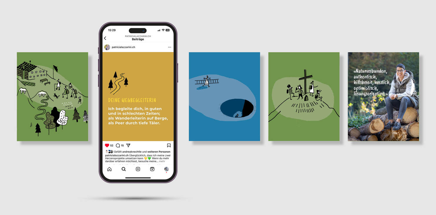 Die Tourismusfachfrau Patricia Lazzarini verbringt viel Zeit an der frischen Luft. Im Engadin aufgewachsen, weiss sie um den Erholungswert von Naturerlebnissen und bietet als Wanderleiterin Auszeiten an, die Kraft für den Alltag geben. Kraft schenkt sie auch mit ihrem zweiten Angebot als Peer. Quersicht gestaltet das neue Erscheinungsbild, inklusive Fotografie von Personenbildern, welche die Authentizität und Naturverbundenheit von Patricia Lazzarini zum Ausdruck bringen.