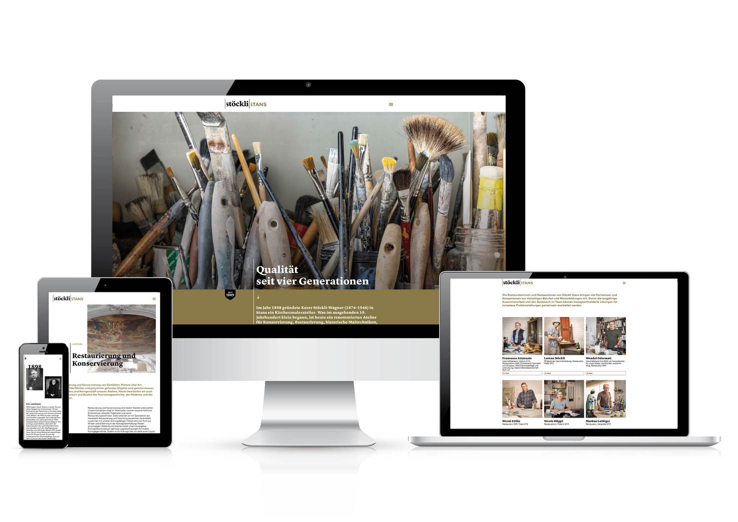 Im Jahr 1898 gründete Xaver Stöckli in Stans ein Kirchenmaleratelier. Was damals klein begann, ist heute ein renommiertes Unternehmen für Konservierung, Restaurierung, historische Maltechniken, Vergoldungsarbeiten und Bauuntersuchungen. 2023 übernimmt die neue Generation die Geschäftsleitung und zu diesem Anlass erarbeitet Quersicht einen rundum neuen visuellen Auftritt inklusive Fotografie.