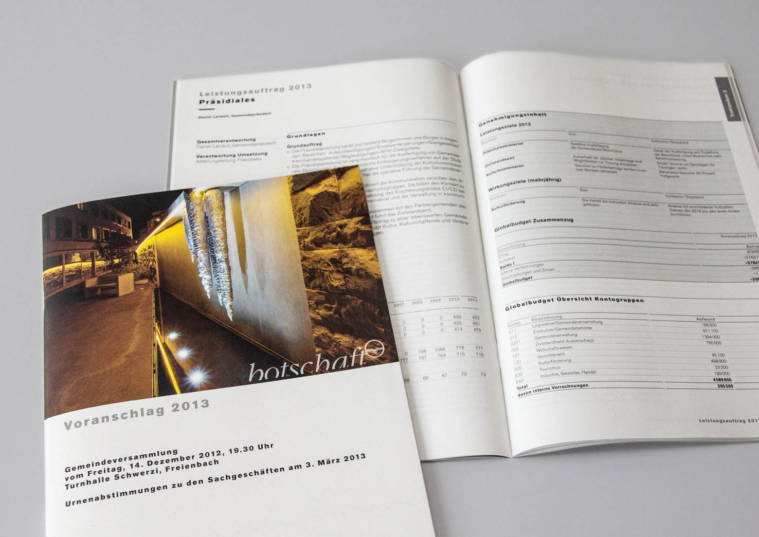 Anwendung bestehendes Erscheinungsbild; Gestaltung Jahresrechnung, Voranschlag, Flyer, Broschüren; Projektorganisation