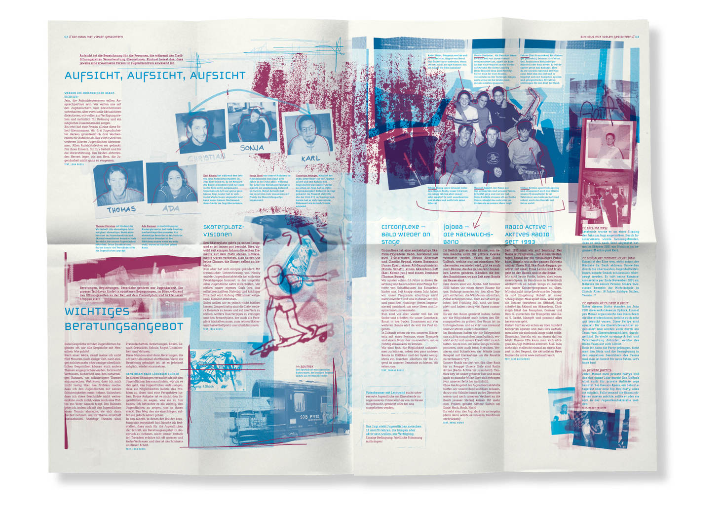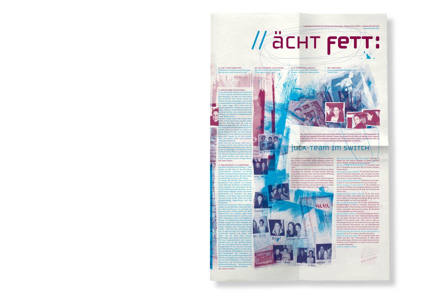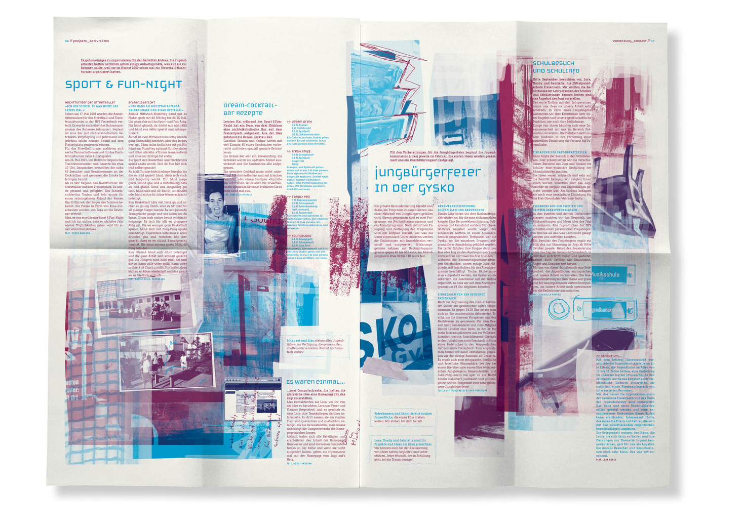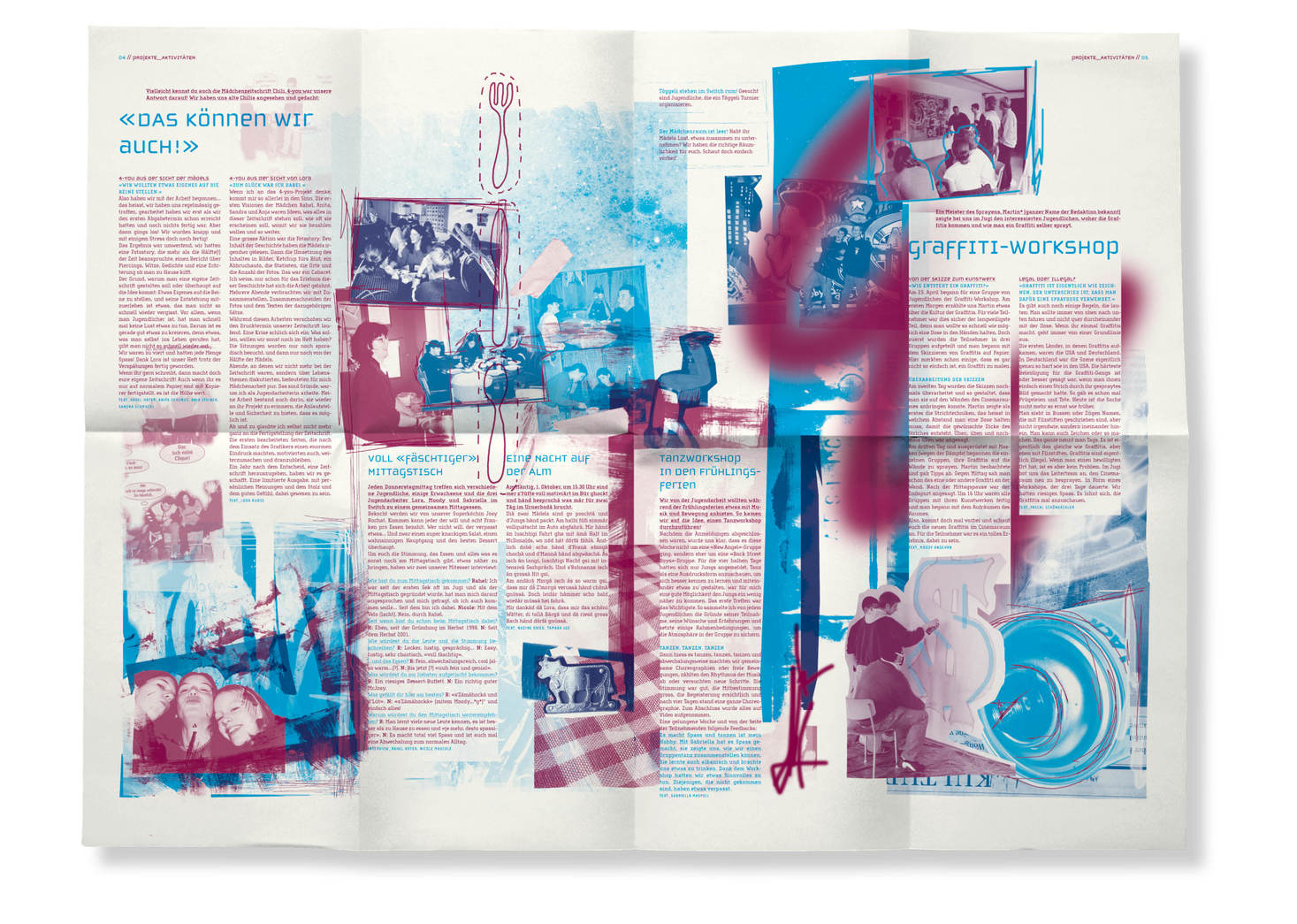 Graffitis, Kritzeleien, Skizzen, Malstrukturen und Fotos sind die Zutaten für das unkonventionell-schräge Bildkonzept des Jahresberichtes für die Jugendkontaktstelle der Gemeinde Freienbach. Auf Zeitungspapier gedruckt, überzeugt die Publikation auch die internationale Red Dot Jury, welche die Gestaltung mit einem Award für hohe Designqualität auszeichnet.