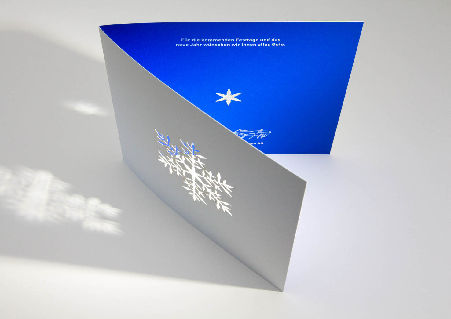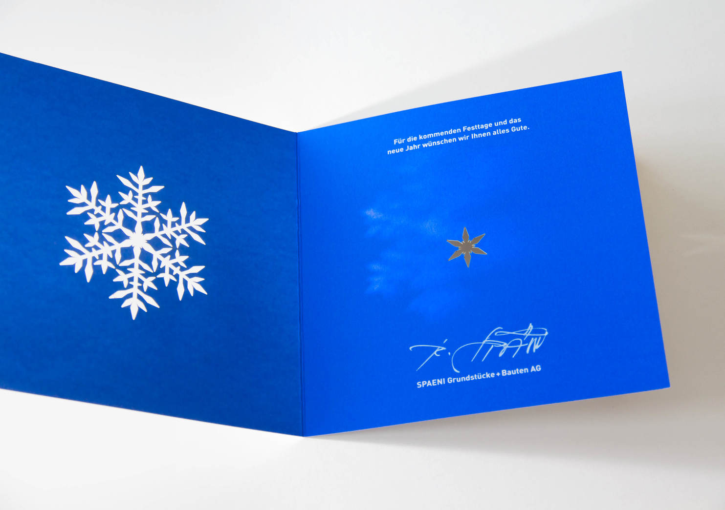 Der Engadiner Zuckerbäcker Peder Benderer kreiert die süssen Köstlichkeiten für das Weihnachtspräsent von Spaeni Grundstücke+Bauten AG, Quersicht gestaltet die passende (Schnee)karte mit Laserstanzung dazu. Warum das Feingebäck auf den nachfolgenden Bildern fehlt? Siehe oben…